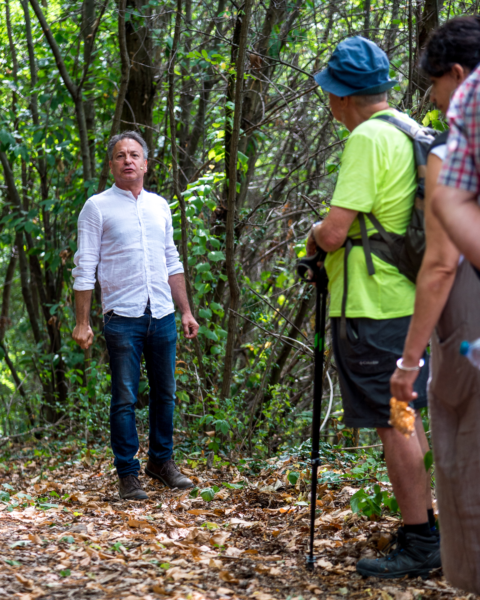 Paolo Musio mette in scena IL BOSCO, il suo ultimo lavoro tratto da testi di Robert Walser, rendendolo mobile e vivificando un itinerario ormai classico di QUADILA Festival (fu inaugurato con la Via Dantis). L’attore cammina con i partecipanti e anima le soste tramite un’avventurosa e, al tempo stesso, rigorosissima conferenza/passeggiata sul tema del bosco: una interpretazione impeccabile su una drammaturgia che ibrida sapientemente le fonti e innesca costanti fughe immaginifiche.
