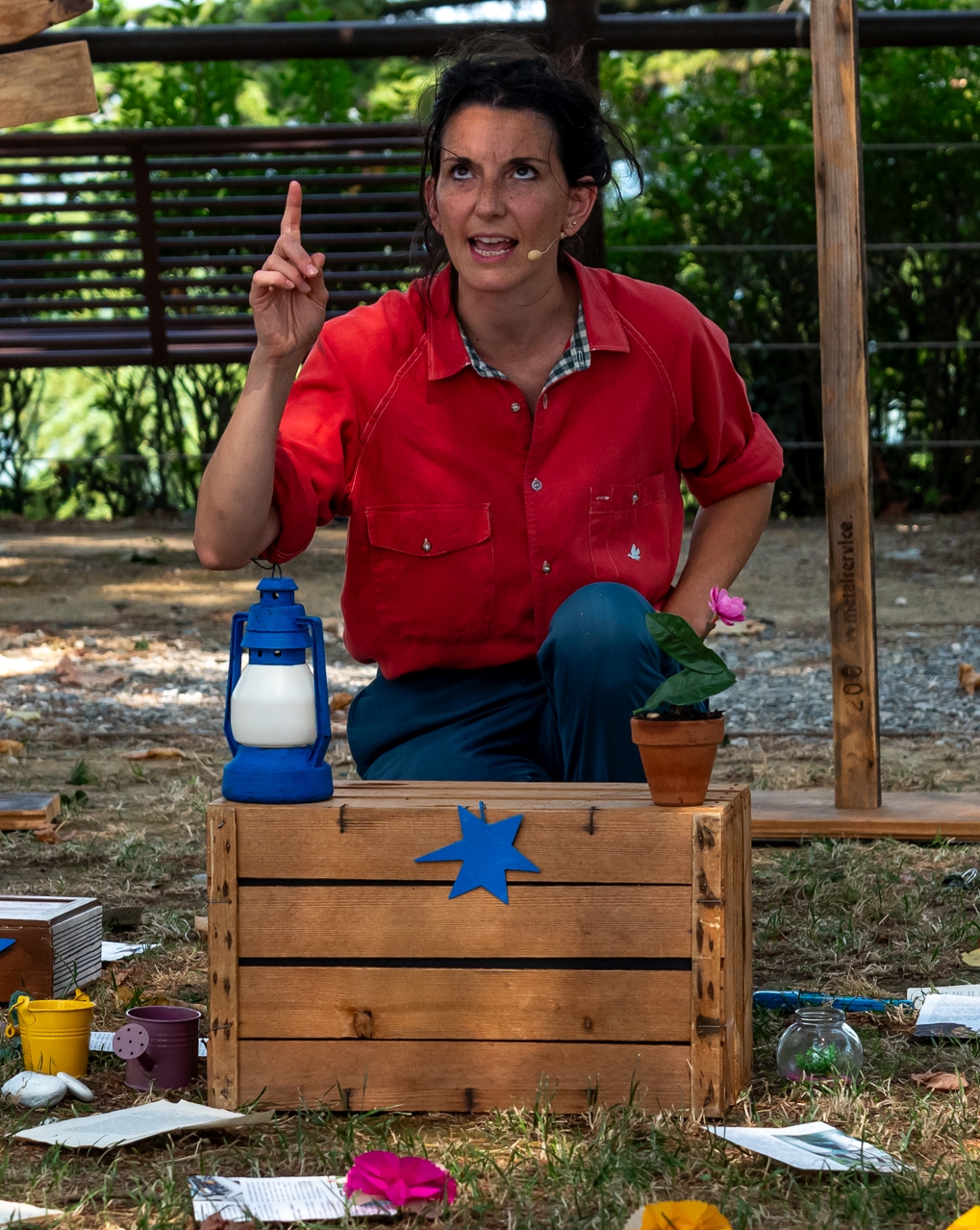 Viola racconta in terza persona di sé evocando la scansione dei momenti importanti della sua vita: quando è ancora una bambina, quando deve imparare cose difficili, quando arriva per lei il tempo di sposarsi e poi di invecchiare. E poi… Lo fa con uno sguardo universale verso un bosco-mondo che è poi la vita. Il racconto di Viola vive della scansione temporale degli appuntamenti di una vita che è la sua, ma potrebbe essere quella di ciascuno di noi. Le fasi del racconto vengono evocate sulla scena da un affresco di azioni accompagnate da: un concerto di oggetti color pastello; il suono di parole essenziali, il prendere vita di dialoghi che arrivano da un tempo lontano, l’odore di pioppo abete e pino, le corde di una chitarra.