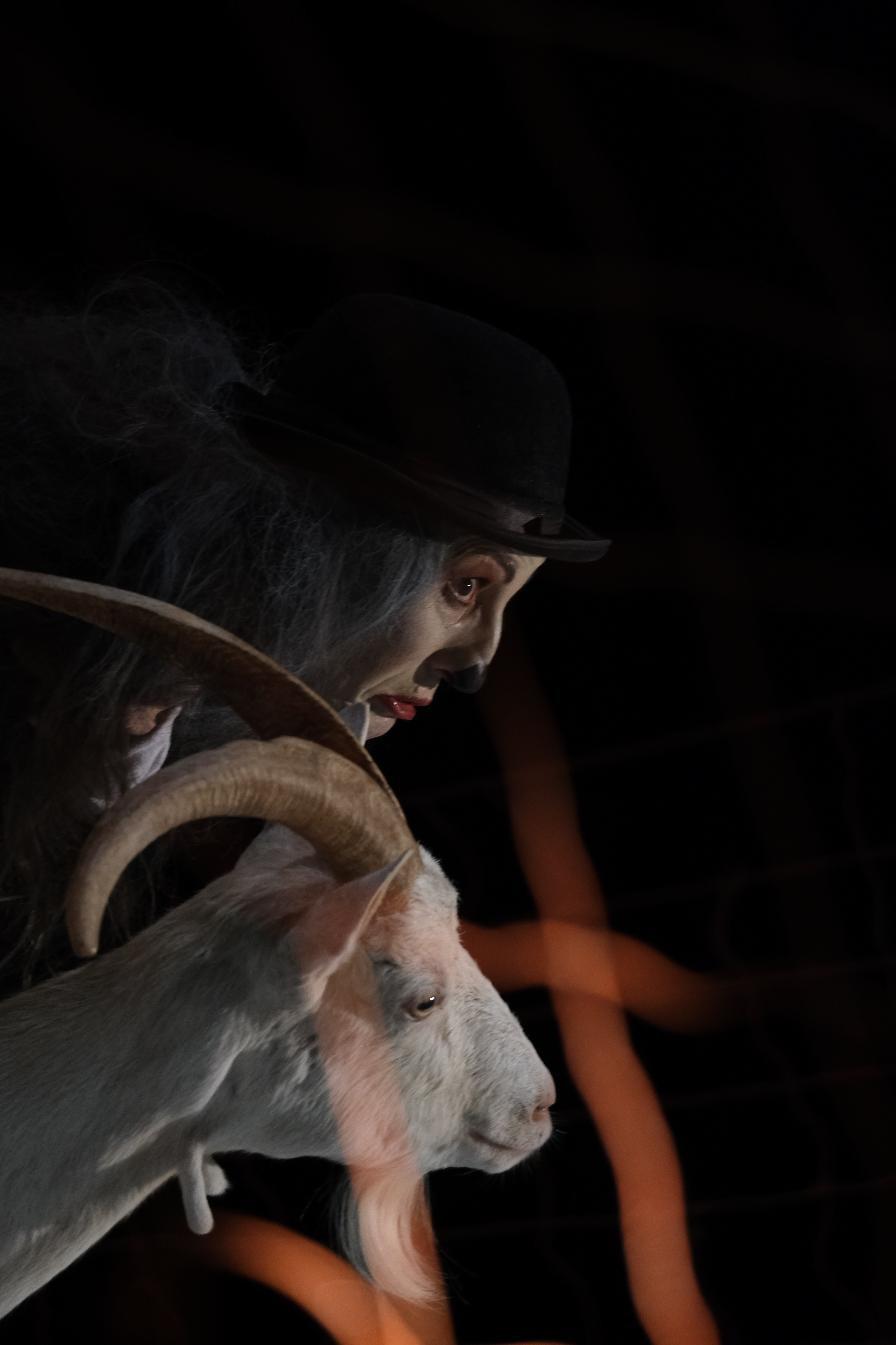 Il monologo Vladimiro mira il mare invita a una particolare meditazione sulla natura dell’uomo e dei suoi eterni dilemmi. Un’attrice e una capra in scena insieme sono il contesto ironico e grottesco in cui si dipana la complessità delle riflessioni. Liberamente ispirato al saggio Hamletica di M. Cacciari ed alcune Prose di S. Beckett, la partitura è originale, surreale e poetica. Vladimiro, rimasto solo, smette di aspettare Godot per andarlo a cercare. L’Uomo, subita una metamorfosi che lo cala nei panni di un grottesco clown, ordisce un ‘dialogo estremo’ con Amaltea, la Capra Dea incarnazione della sua Anima. Così, da un susseguirsi di ‘gestimpossibili’, come a riempire un vuoto incolmabile dove anche la parola a tratti si frantuma, prende vita un duplice interrogarsi non privo d’ironia e comicità.